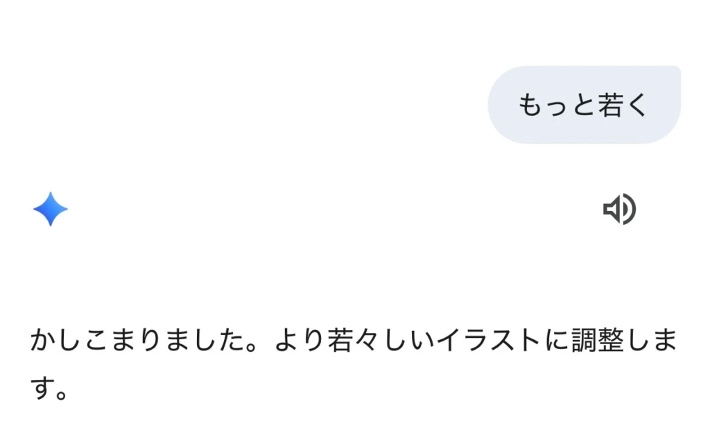 Geminiは、若めに作成してくれるとかの忖度はしてくれないようです。