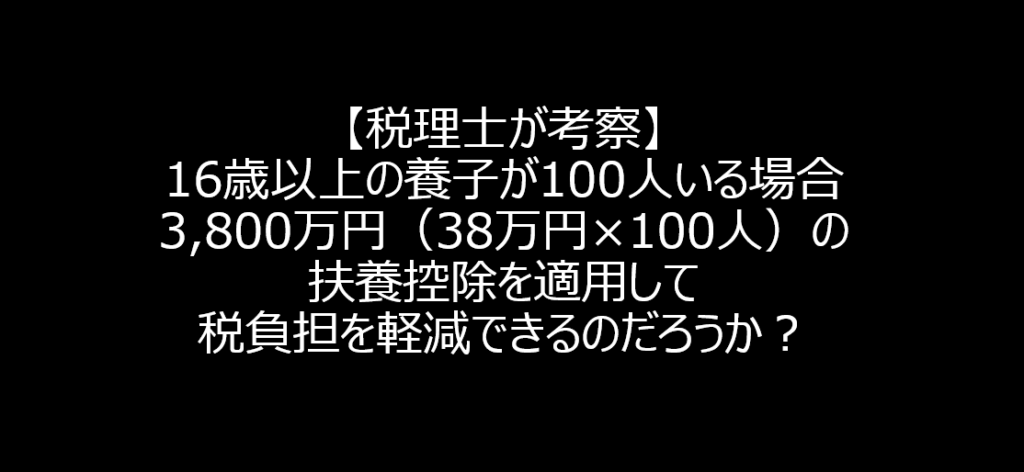 【税理士が考察】16歳以上の養子が100人いる場合3,800万円(38万円×100人)の扶養控除を適用して税負担を軽減できるのだろうか
